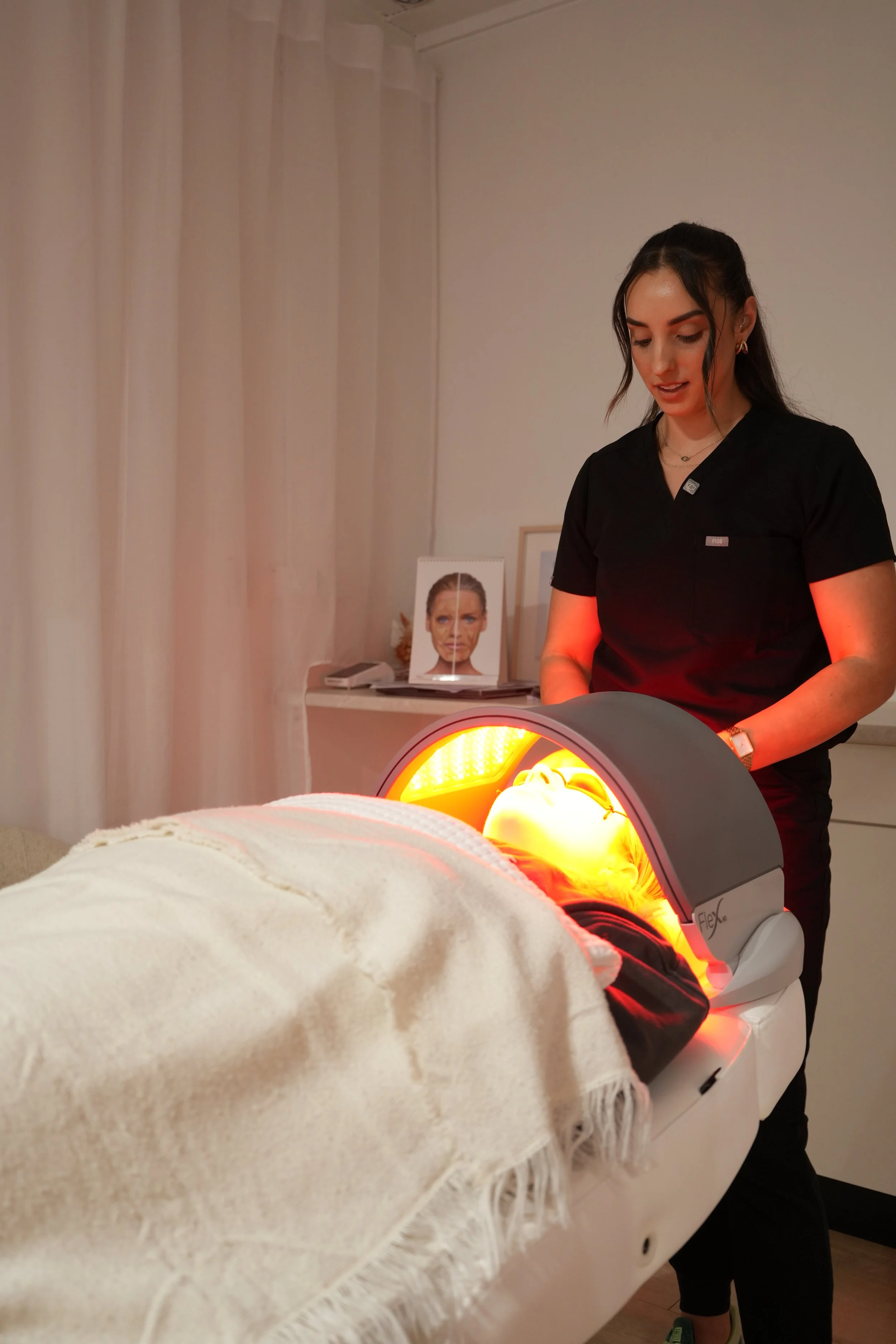 Nurse Kayla customises LED sessions to target concerns like inflammation, breakouts, dullness and healing. Treating your skin where our hands can’t reach, relieving inflammation, deeply stimulating and smoothing skin. Delivering safe and effective results for a wide range of skin conditions such as acne, dehydration, sensitive, inflamed, fine lines and wrinkles, eczema, dermatitis and rosacea. Dermalux is medically certified and is clinically proven Blue 415nm, Red 633nm and Near Infrared 830nm delivered via single wavelength LEDs ensure targeted light delivery into the skin. Dermalux LED can deliver all three wavelengths simultaneously in one sitting.